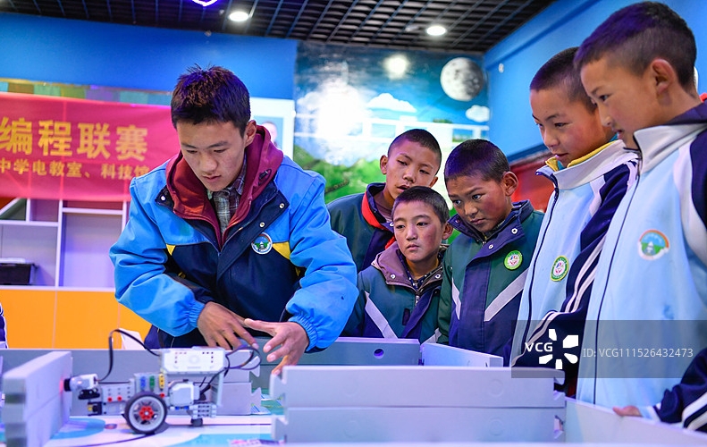 ラサ市にある江蘇実験学校には、近代的な校舎が目立ち、先進的な教学設備が整い、校庭には生徒の笑い声が響き渡っている。「私たちの学校にはロボットプログラミングや3Dプリントなど面白い授業がたくさんあり、いろいろな部活動もあります。これらの授業では教科書以外の知識がたくさん学べます」と5年生のデジチュマ(徳吉卓瑪)さんは興奮気味に話す。豊富な校内授業のほか、学校は遠隔教育システム(6)も活用し、江蘇省の名門学校と同期して授業を行っている。これにより、生徒たちは高原にいながら豊かな教育資源を享受できる。