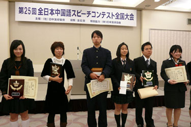 (社団法人)日中友好協会の主催による第25回全日本中国語スピーチコンテスト全国大会が13日、東京日中友好会館で行われました。大会には、大学生部門8名、高校生と一般部門12名、合計20名が出場し、競い合いました。
