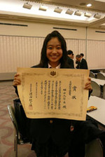 神奈川県立外国語短大付属高校三年生の塚田久留美さんと自営業の松下朋香さんは、それぞれ高校生と一般部門で一等賞と三等賞を射止めました。