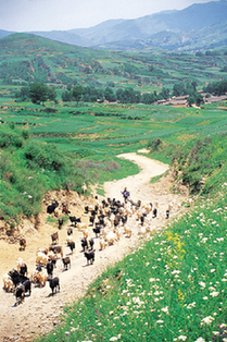 私も霊仙の足跡を求めて、円仁と同じ道をたどろうとしていた。しかし、霊仙がいたという霊境寺遺跡を探しながら少軍梁村の道を通り抜けているときには、何に出くわすのか見当もつかなかった。道は川床からはるかに高く、山中に入っていった。あちこちで路上の羊飼いやバイクに乗った人たちに教えられながら、私はごくおおざっぱな方向感覚を頼りに、ぐるぐると山道を曲がりくねって21キロばかり進んだ。