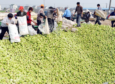余姚は国の農業部(日本の省に相当)が認める「中国のザーサイの里」で、ザーサイの作付面積は約6667万平方メートルにも上る。ザーサイは四川が有名だが、余姚のものは丸く大きく、口あたりがいいのが特徴で、高いブランド力を持つ。余姚では毎年4月上旬がザーサイの収穫期だが、日持ちがしないため収穫するとすぐに業者に引き渡され、加工工場に送られておなじみの漬物に加工される。(写真提供=余姚市政府)