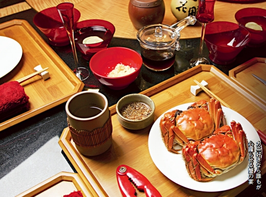 カニの食べ方には人それぞれの流儀があるが、食べ慣れていない人の皿は砕けた殻だらけで、手慣れた人の皿には姿のままの殻が乗っている、という傾向はあるようだ。達人級になると、宴席のホストへの感謝を込めて殻で蝶を作る人まで現れる。カニのハサミを割って骨の一部を引き出し、それを交互に組み合わせると美しい蝶の形になるのだ。