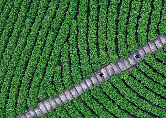 「中国白茶第一村」とも呼ばれる安吉県渓龍郷の黄杜村では、1万ムー(約667㌶)に及ぶ茶畑が青空と白雲を背景に広がり、竹かごを背負った茶農家たちが畝の間を行き交う。その光景を遠くから眺めているだけで、時間の流れを忘れてしまうほどだ。