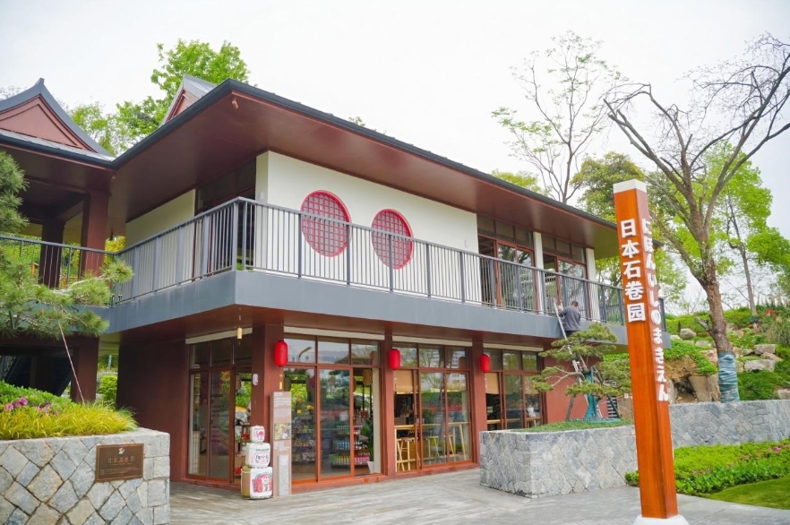 浙江省温州市で行われている温州園博会(中国〈温州〉国際園林博覧会)の日本園は石巻園を主軸に据え、枯山水の禅の趣きと茅葺き屋根の要素を抽出し、至極簡潔な白い砂、青い苔、松と石を用いて静謐で奥深い日本的美学の空間を創り出し、「侘び寂び」の哲学を伝えている。園内は「日本のアニメ漫画的文化記号」が巧みに融合し、伝統的イメージと現代的ファッションが交差し、静的な美と若々しい活力が共存し、和風の雅な趣きが堪能できる。東方の美学を分かち合うこの約束の場所は、世界中の友人の来場を待っている。