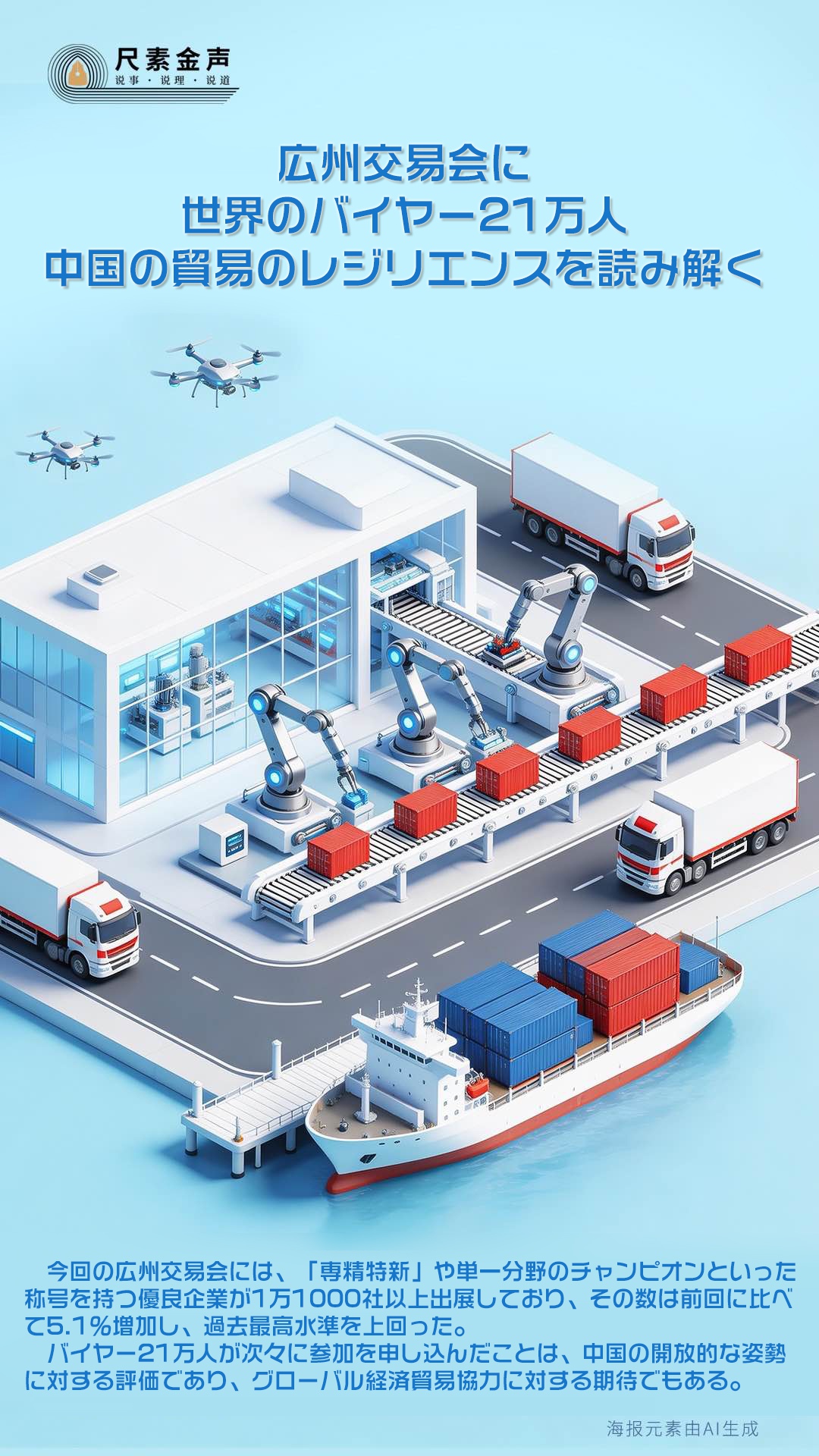 広州交易会は中国の貿易の状況を示すバロメーターだ。事前登録をした海外バイヤーが21万人にも及んだことは、中国の貿易のレジリエンスを示す確固たる証明である。広州交易会を通じて、中国の貿易の長期にわたるレジリエンスのカギを読み解くことができる。